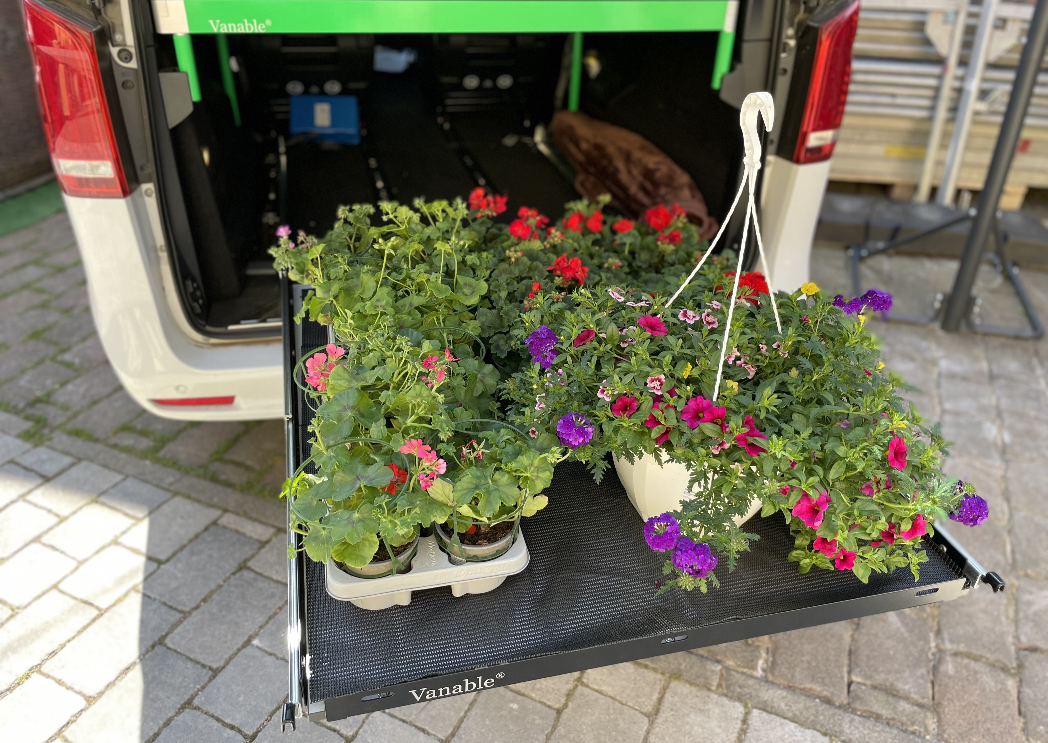 Die einfache, fast werkzeuglose Montage macht den Einbau ebenso unkompliziert wie beim Vanable. Die Kombination aus robusten Schwerlastauszugsschienen und die Leichtbauweise der übrigen Konstruktion macht den Vanable-Heckauszug haltbar, stabil und leicht zugleich. Zum sicheren Be- und Entladen wird der Heckauszug beim Herausziehen sowie beim Einschieben an zwei Hebeln entriegelt.