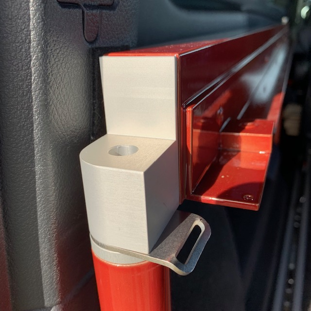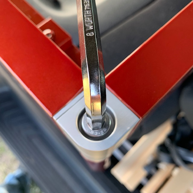 Weiter geht es mit dem hinteren Kopfteil. Legt es dazu zunächst auf einer Seite auf und sichert es mit einer Schraube. Dann legt ihr es auf der anderen Seite auf und zieht beide Schrauben gut an. Sind beide Seitenteile richtig aufgestellt, lassen sich die Schrauben leichtgängig eindrehen. Achtet darauf, dass die Verzurrösen in Richtung Verzurrpunkte ausgerichtet sind. Sie sollten nicht nach außen zeigen, da sie so die Verkleidung des Fahrzeugs zerkratzen können.